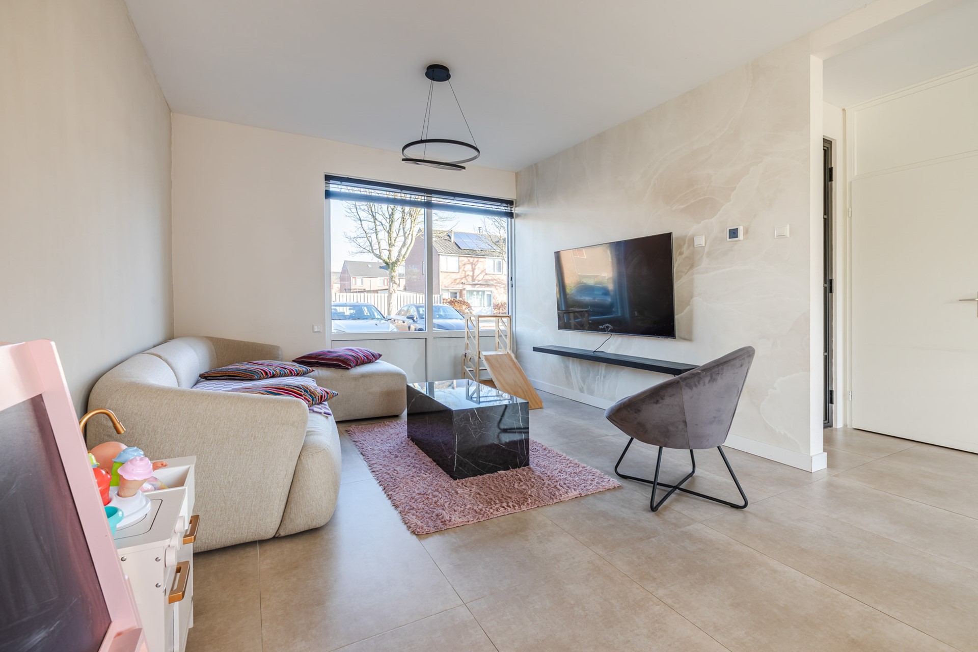 De strak afgewerkte voorgevel met grote raampartij en moderne voordeur verraadt meteen de verzorgde staat van de woning. Binnen valt direct op hoe eigentijds en netjes alles is afgewerkt: strakke vloeren, glad gestuukte wanden en een stijlvol kleurgebruik.