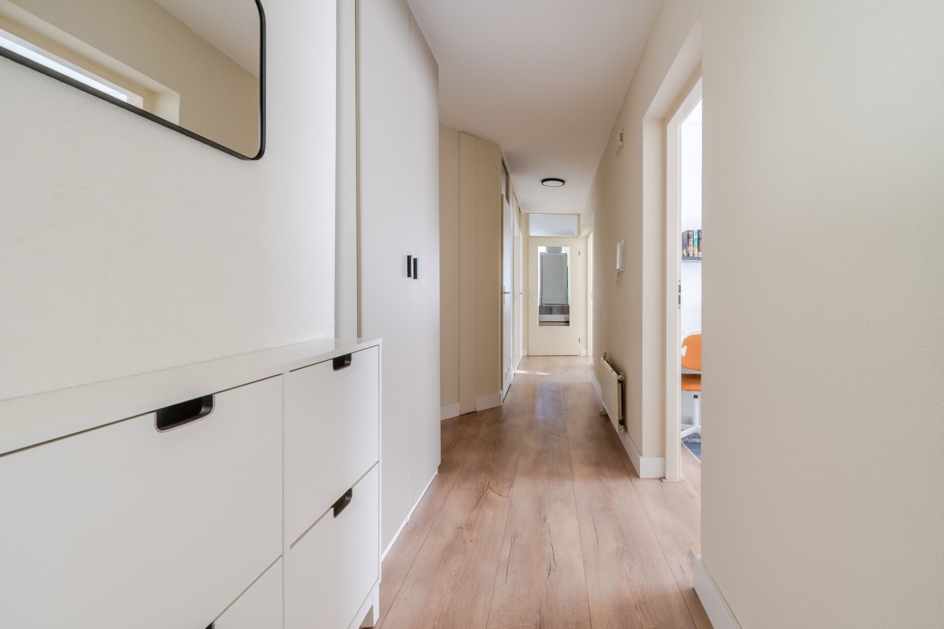 Via het portiek bereikt u de entree van het appartement. De ruime hal geeft toegang tot vrijwel alle vertrekken.